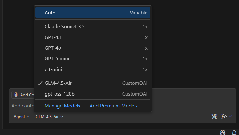 Alternatively, you can manually add your custom model configuration in the github.copilot.chat.customOAIModels